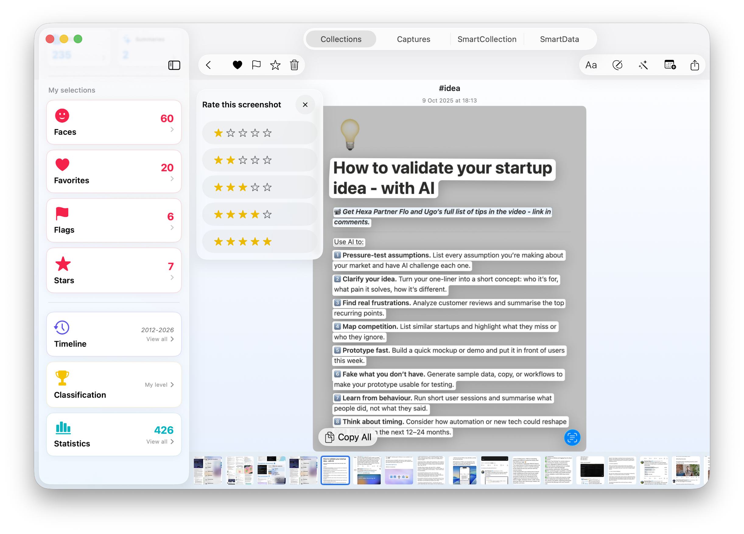 CaptainShot is an innovative application (iOS, iPadOS, MacOS) to automatically organize, classify, and manage user screenshots, transforming a cluttered photo library into a structured and searchable collection.
